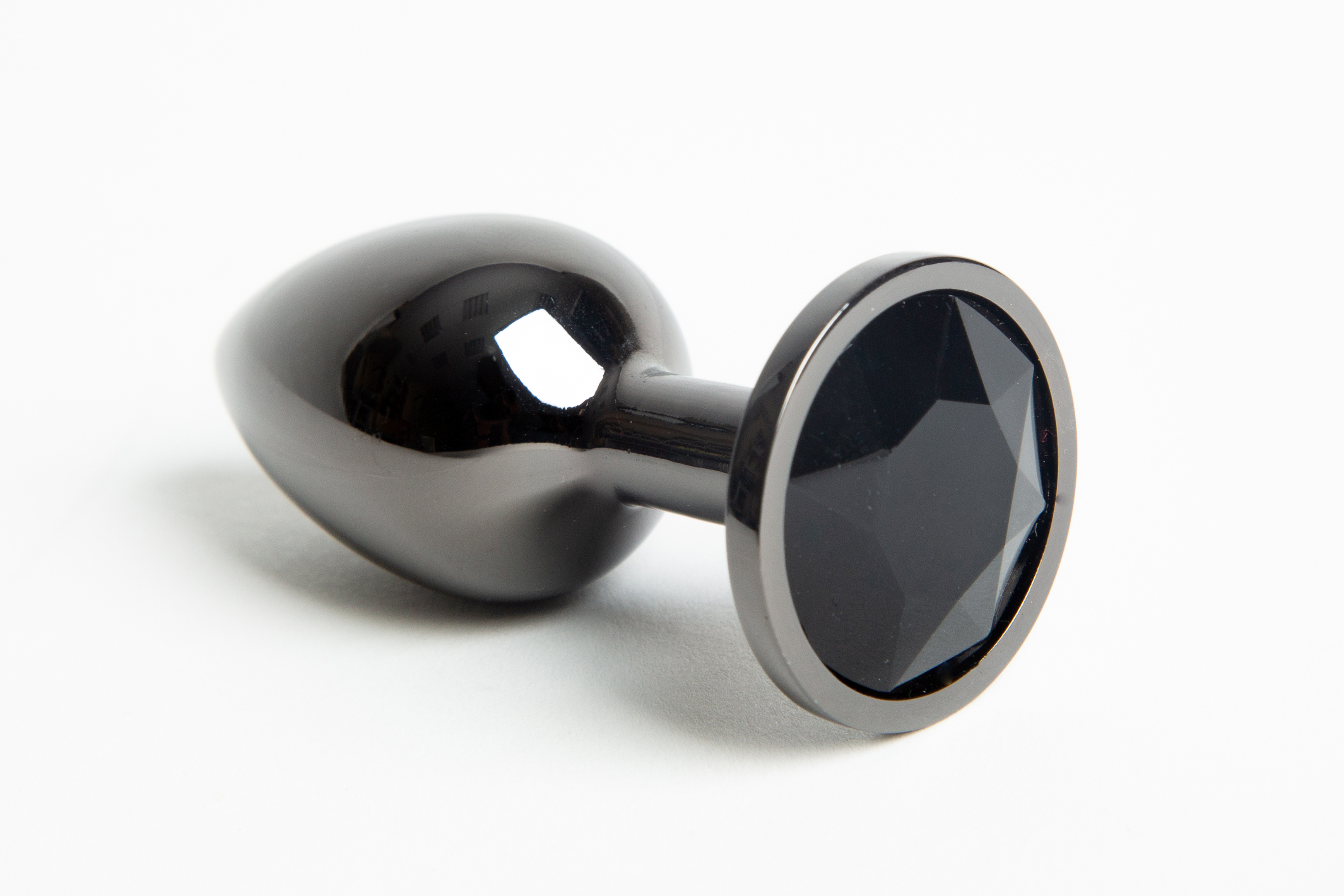 Анальная пробка черная с черным стразом 47412-7-MM