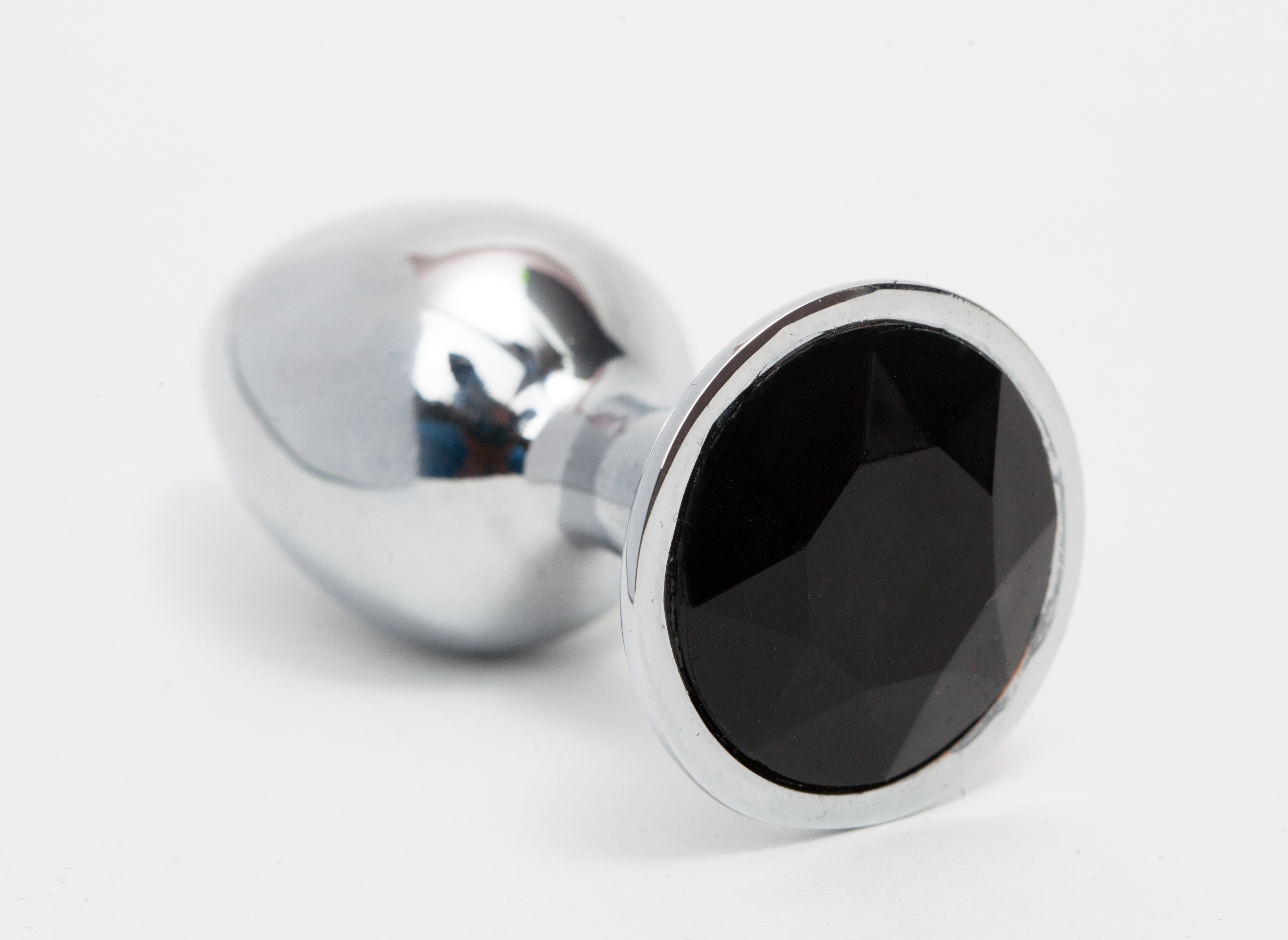 Анальная пробка металл 3,4х8,2 серебро черный страз 47022-1MM