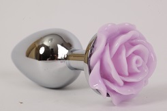 Анальная пробка металл большая с розой сиреневая 9,5х4см 47184-2MM