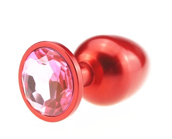 Анальная пробка металл красная с розовым стразом 7,6х2,8см 47414-MM