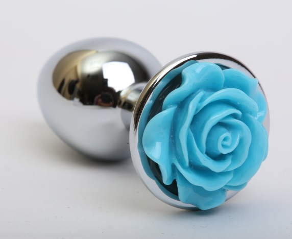 Анальная пробка металл с розой голубая 2,8х7,6 47185-MM
