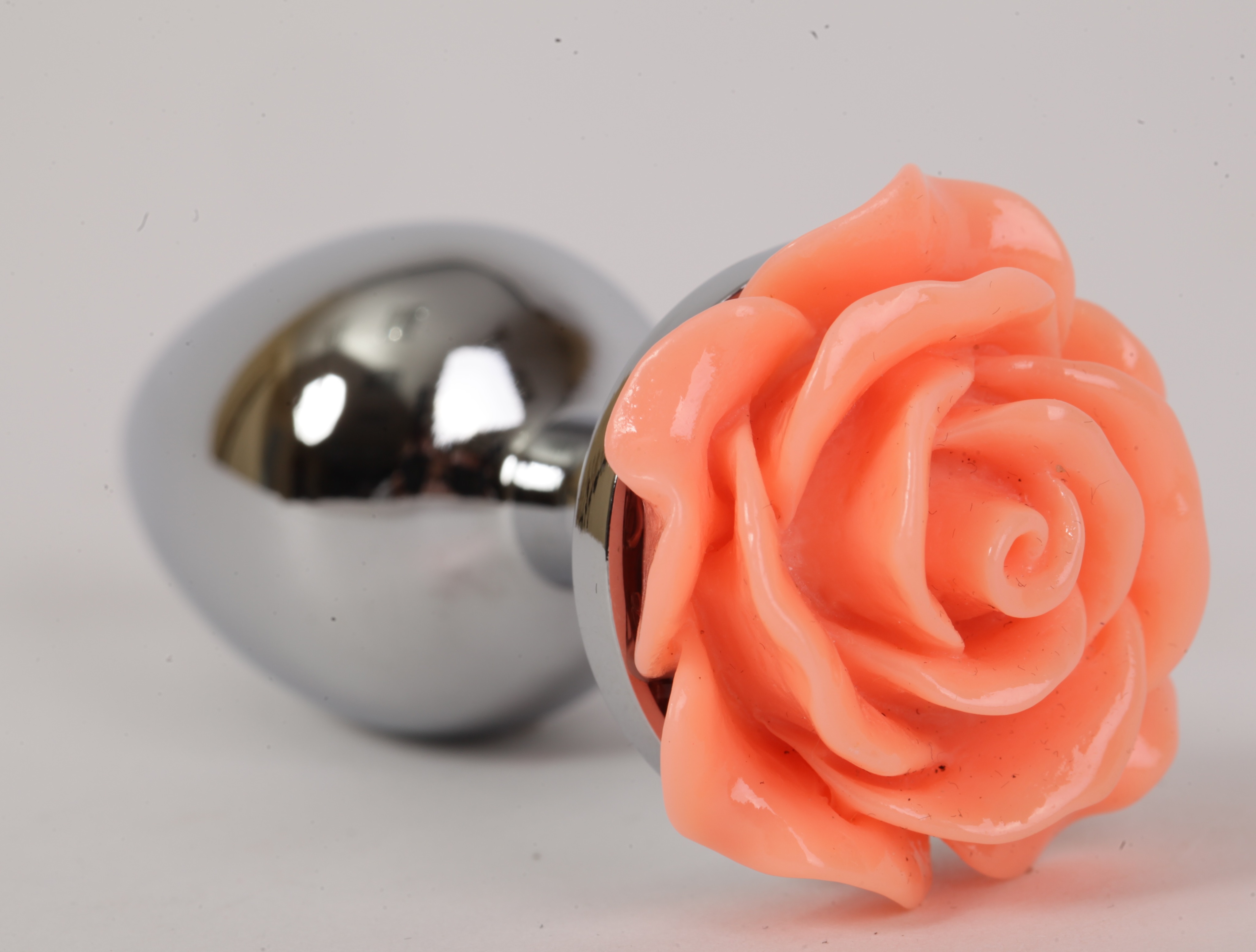 Анальная пробка металлическая с розой цвет-лосось 2,8х7,6 47182-MM