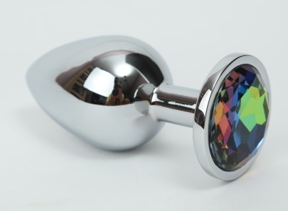 Анальная пробка серебро с радужным стразом 3,4х8,2  47112-1ММ
