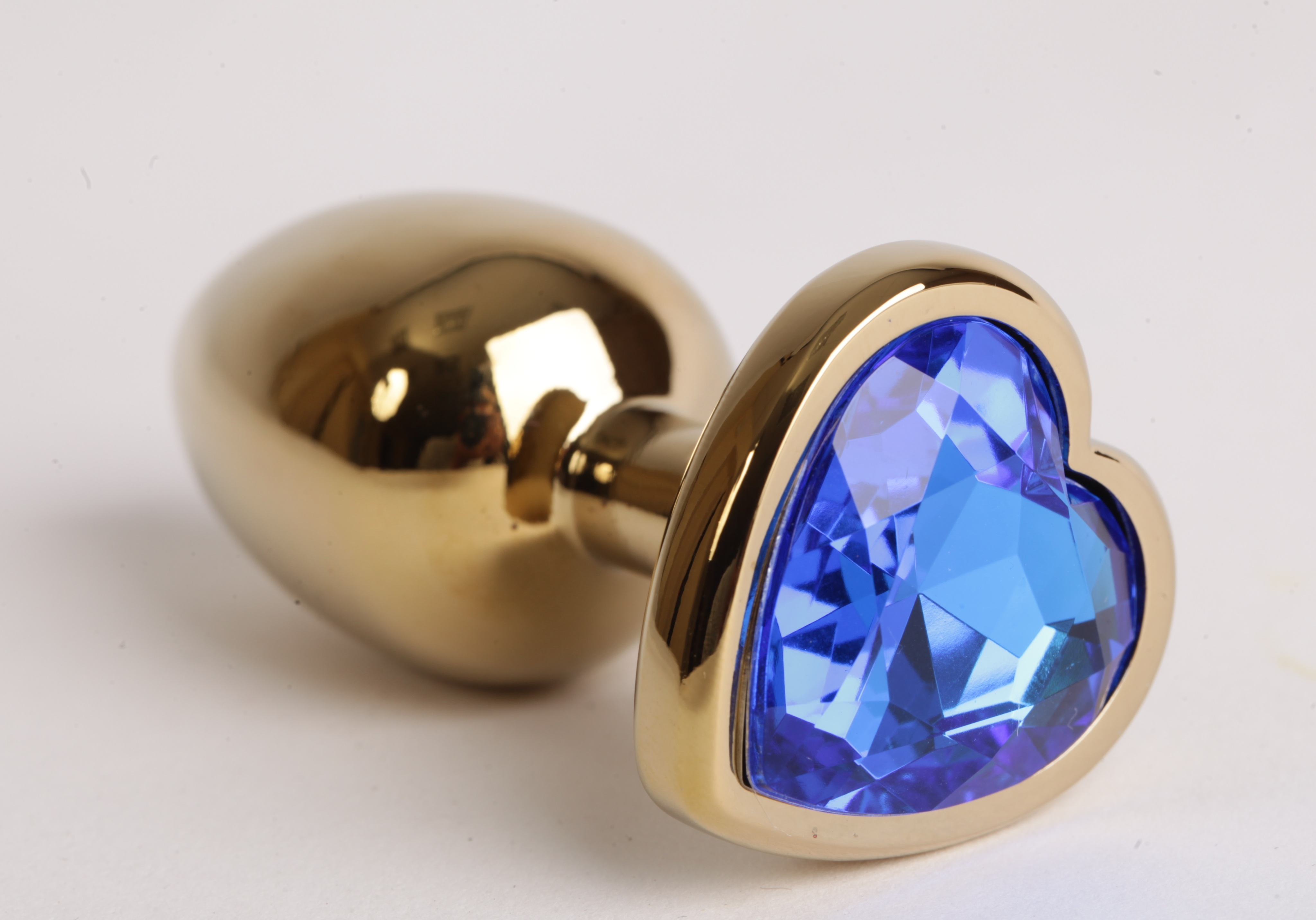 Анальная пробка золото 7,5 х 2,8 см с сердечком синий страз размер-S 47190-MM