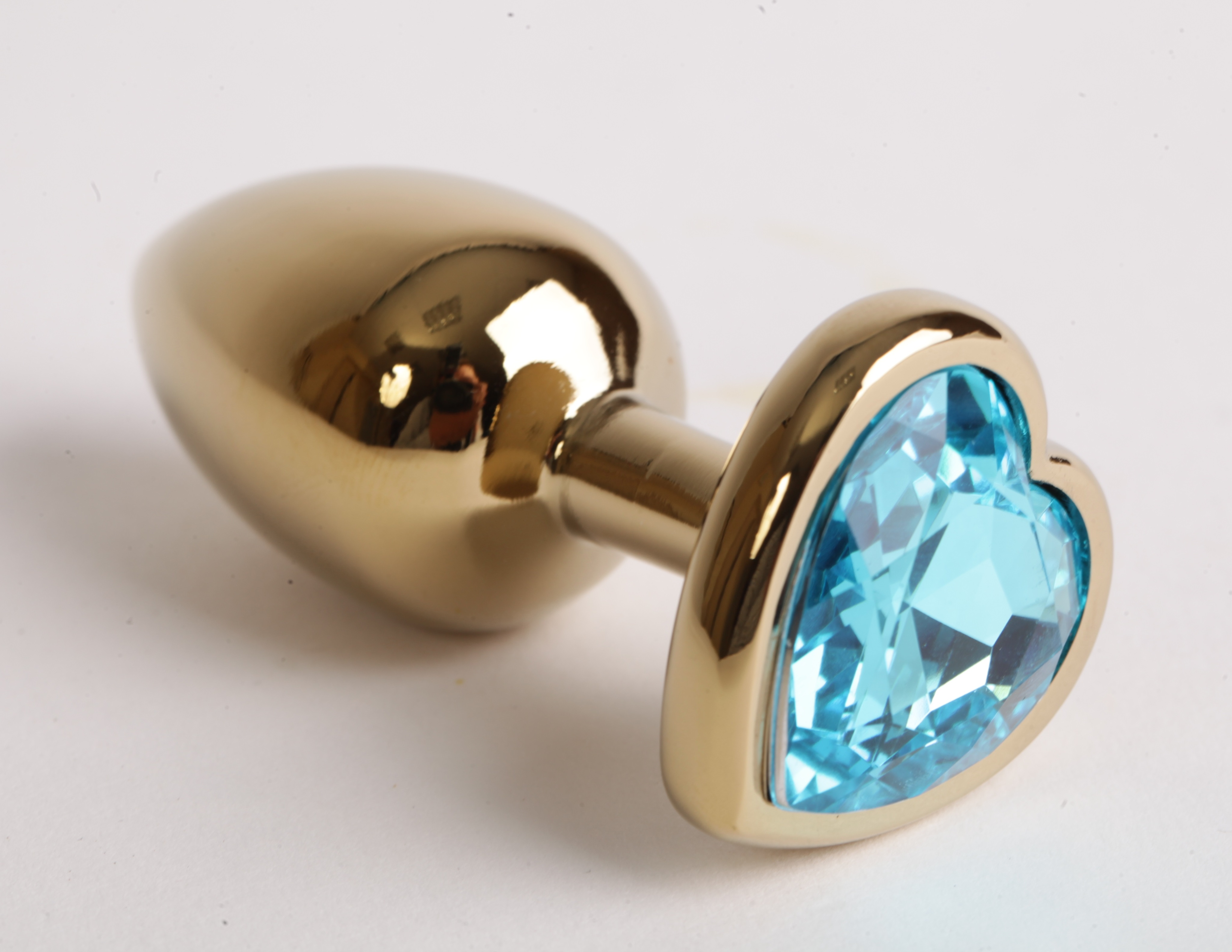 Анальная пробка золото 8х3,5см с сердечком голубой страз 47194-1-MM