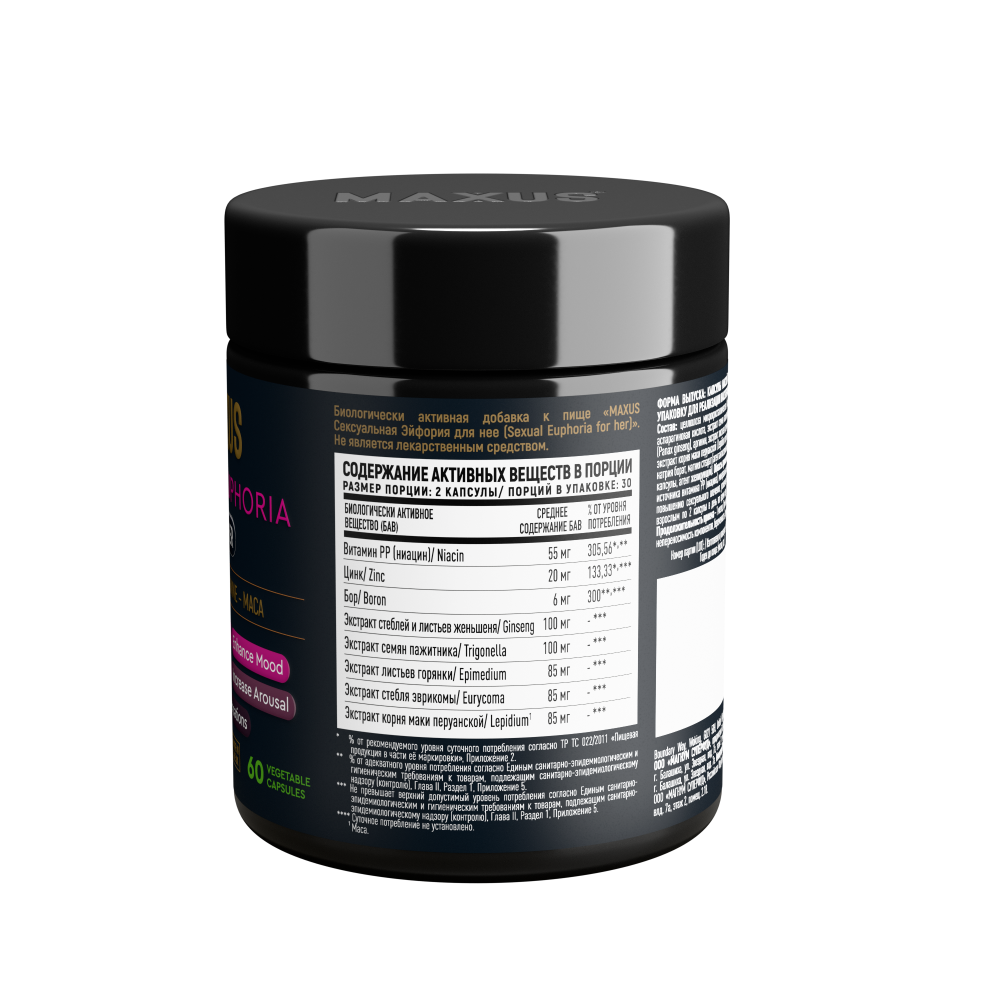 MAXUS Sexual Euphoria for her - БАД Сексуальная Эйфория для неё, 60 капсул