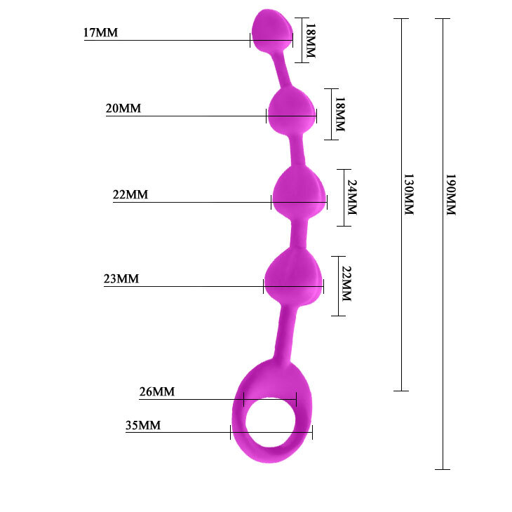 Анальная цепочка состоит из четырех структурных бусин диаметром от 2,5 см до 1,7 см. Для удобства извлечения предусмотрено кольцо. Изготовлена из гладкого, шелковистого материала, приятного на ощупь.