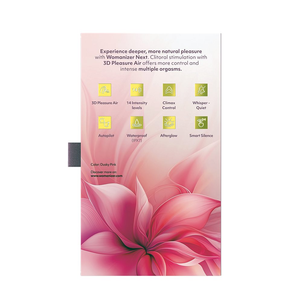 Womanizer Next — это не просто дополнение к обширному ассортименту Womanizer; это также самый тихий продукт на сегодняшний день. Спустя десять лет после запуска первого Womanizer, который изменил интимную жизнь бесчисленного количества женщин, технология 3D Pleasure Air открывает новую эру женского удовлетворения.