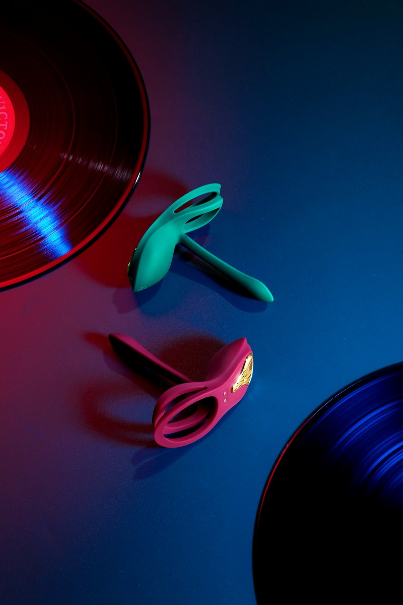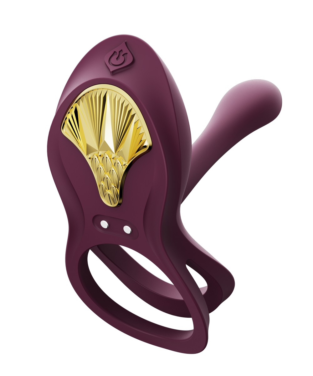 У виброкольца двойные кольца, которые растягиваются вокруг мошонки и основания полового члена, усиливая эрекцию. Его также можно использовать на пальцах для ручной стимуляции. Устройство украшено золотистым элементом в форме щита, что придает ему стильный вид.
