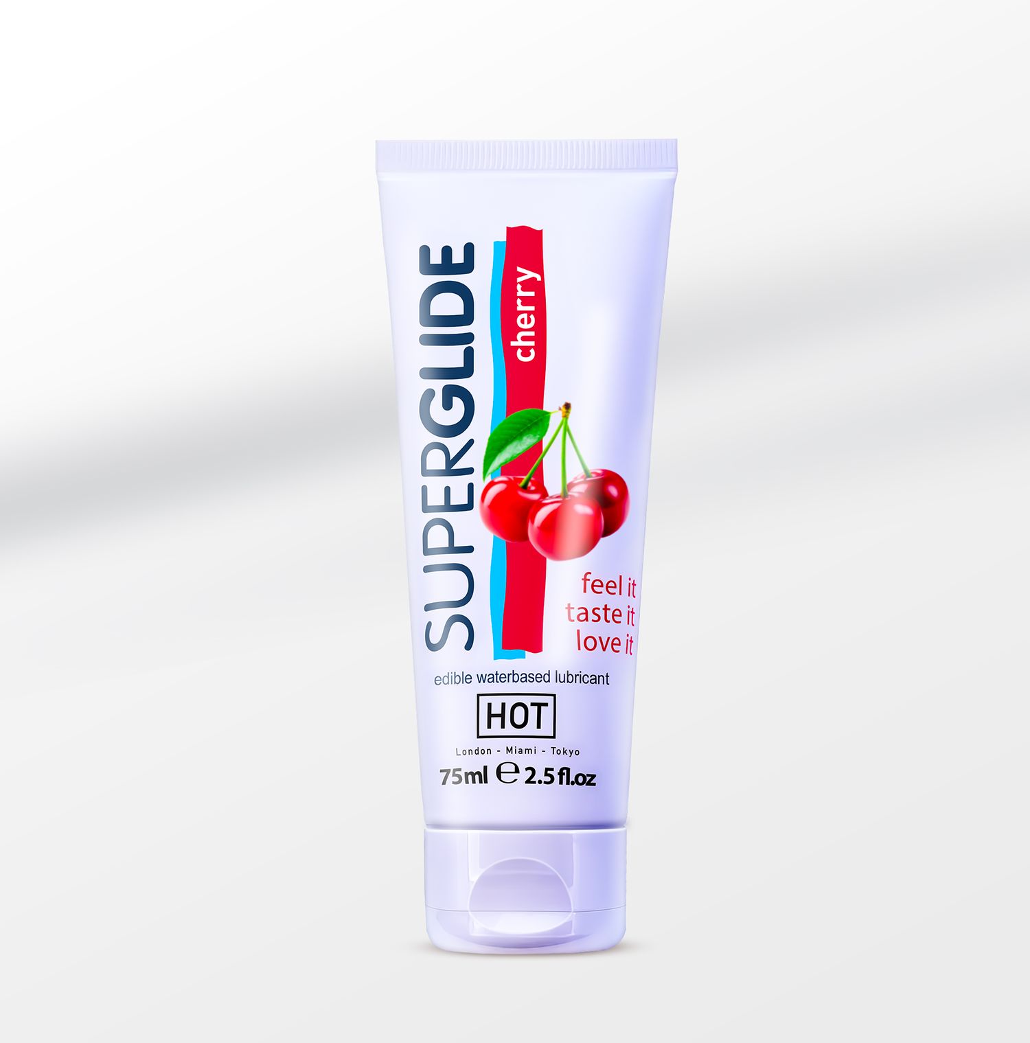 Съедобный лубрикант Cherry из линейки Superglide австрийской марки HOT Productions & Vertriebs – это универсальная смазка на водной основе, которая подходит для оральных ласк. Лубрикант со вкусом и ароматом вишни безопасен и содержит натуральные растительные экстракты, ингредиенты используются в пищевых продуктах, ​​поэтому пригодны для проглатывания. Помимо создания продолжительного эффекта скольжения во время эротических игр, продукт отлично подходит для мануальных техник и массажа. Он не оставляет ощущения липкости, не пачкает белье и легко смывается водой. Можно использовать с презервативами и сексуальными игрушками.