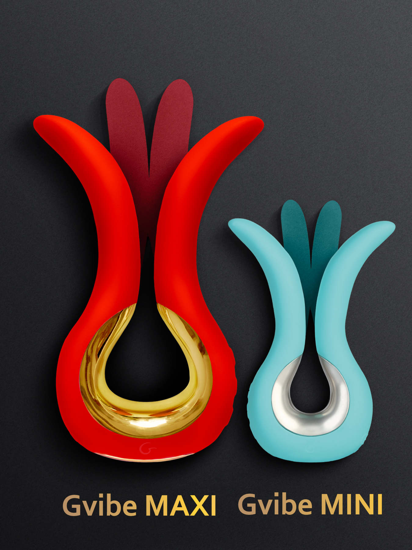 Gvibe Maxi — универсальный вибратор с ярким дизайном и золотистой отделкой. Это увеличенная и более мощная версия Gvibe Mini. У него такой же удобный и инновационный дизайн, но теперь он предлагает более интенсивную двойную стимуляцию и двойное проникновение.