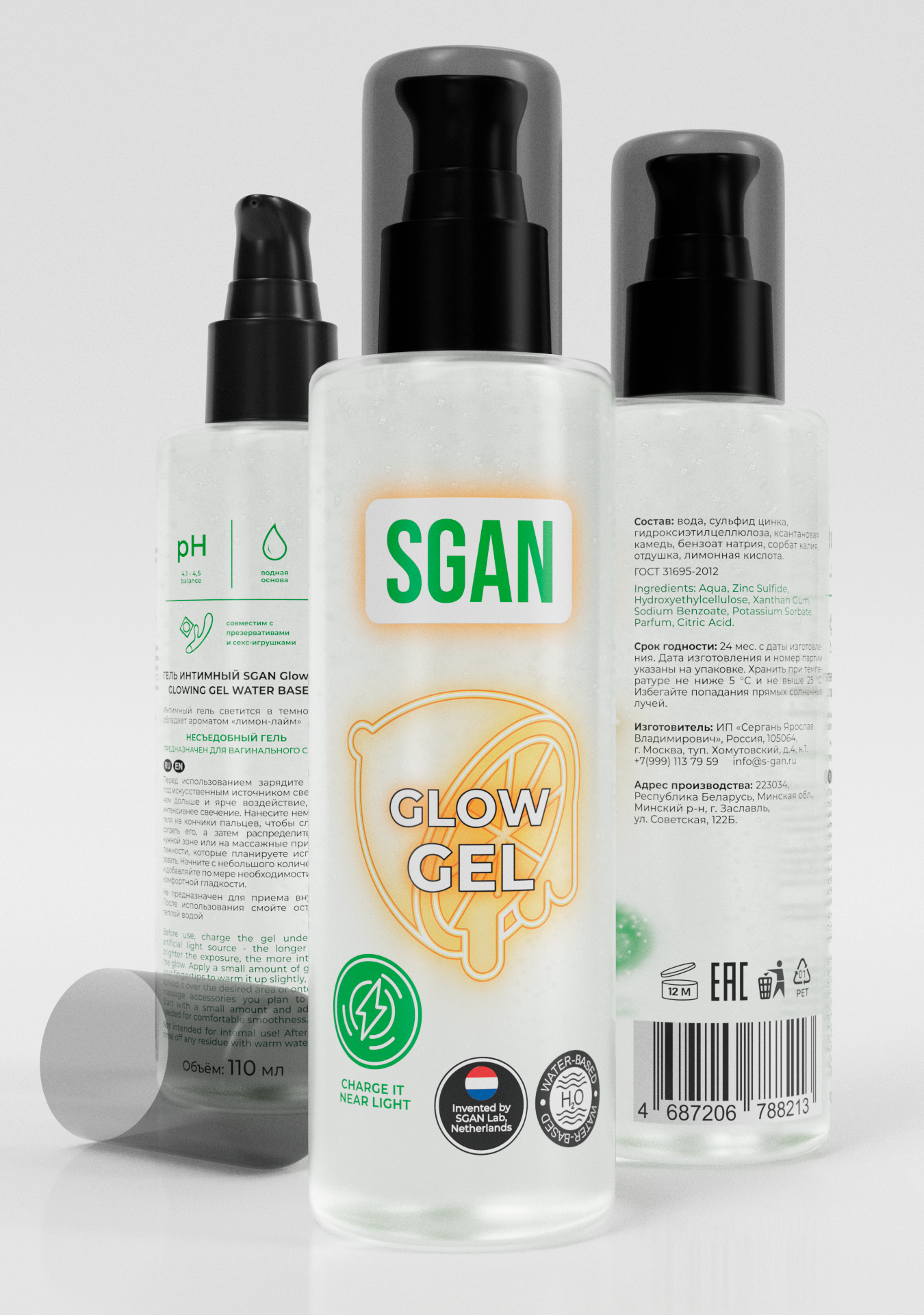 Интимный гель на водной основе “SGAN GLOW GEL” с эффектом свечения разработан сексологами в Нидерландах для тех, кто ищет новые яркие ощущения и заботится о своем комфорте.