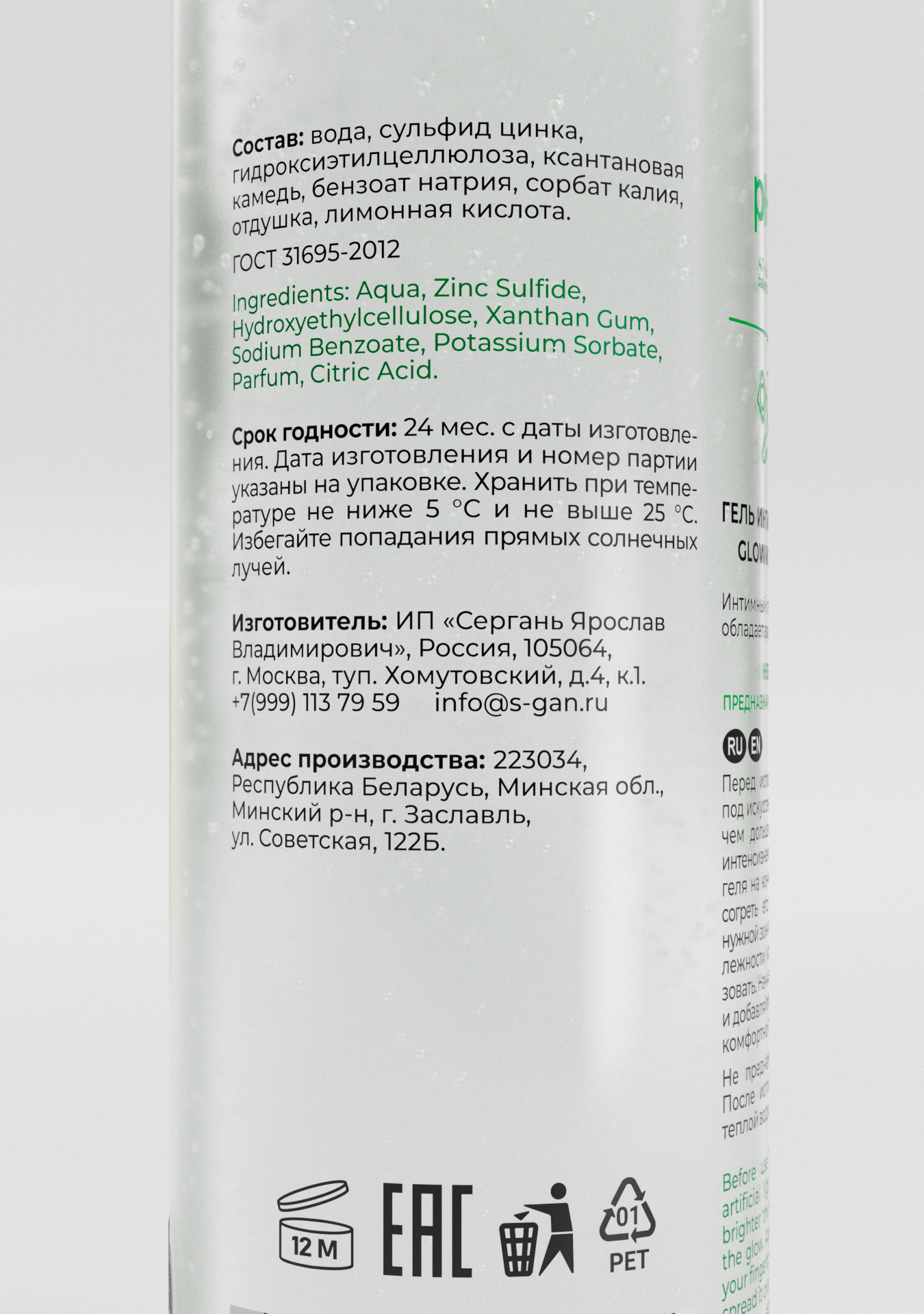 Уникальная формула с частицами сульфида цинка создает завораживающий эффект неонового свечения, превращая интимную близость в незабываемое зрелище. Это полностью безопасный и инертный компонент, который обеспечивает потрясающий визуальный эффект, не нарушая нежную микрофлору.