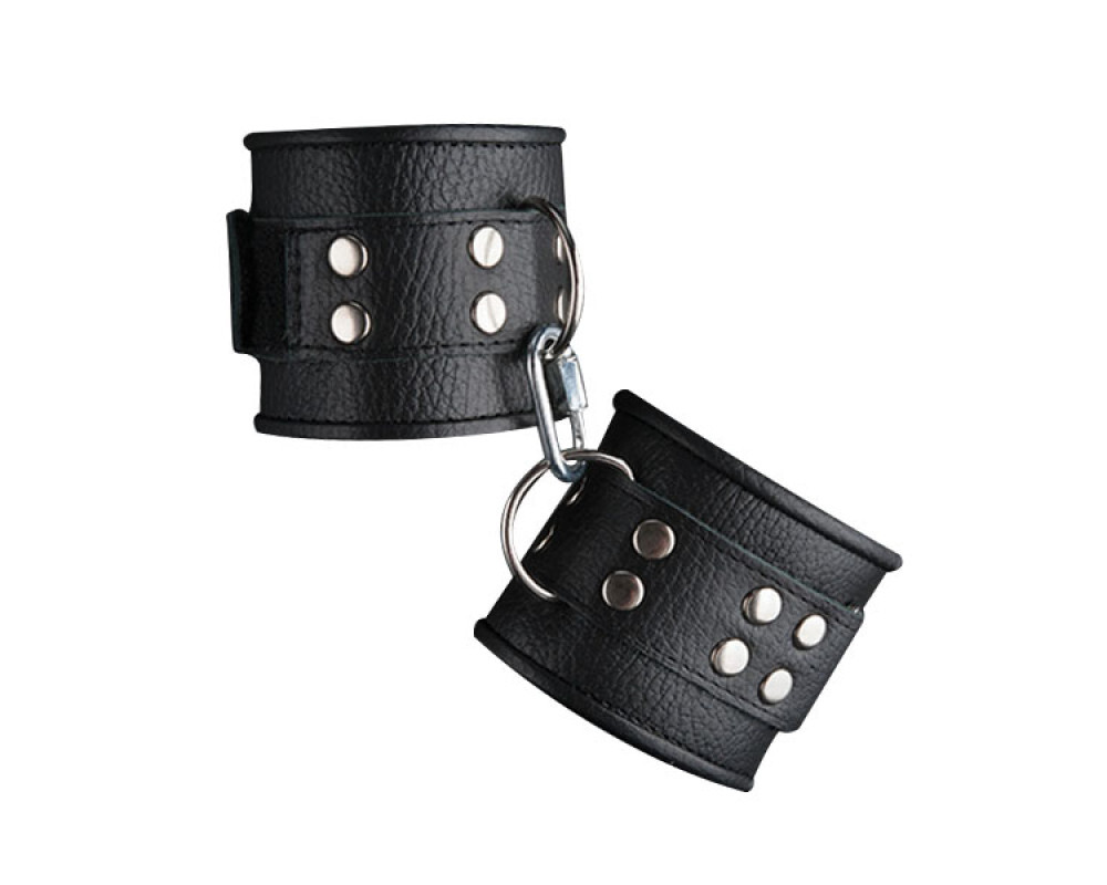 Изготовленные из натуральной качественной кожи, чёрного цвета и украшенные небольшими металлическими элементами, наручники помогут окунуться в царство эротических безграничных возможностей.