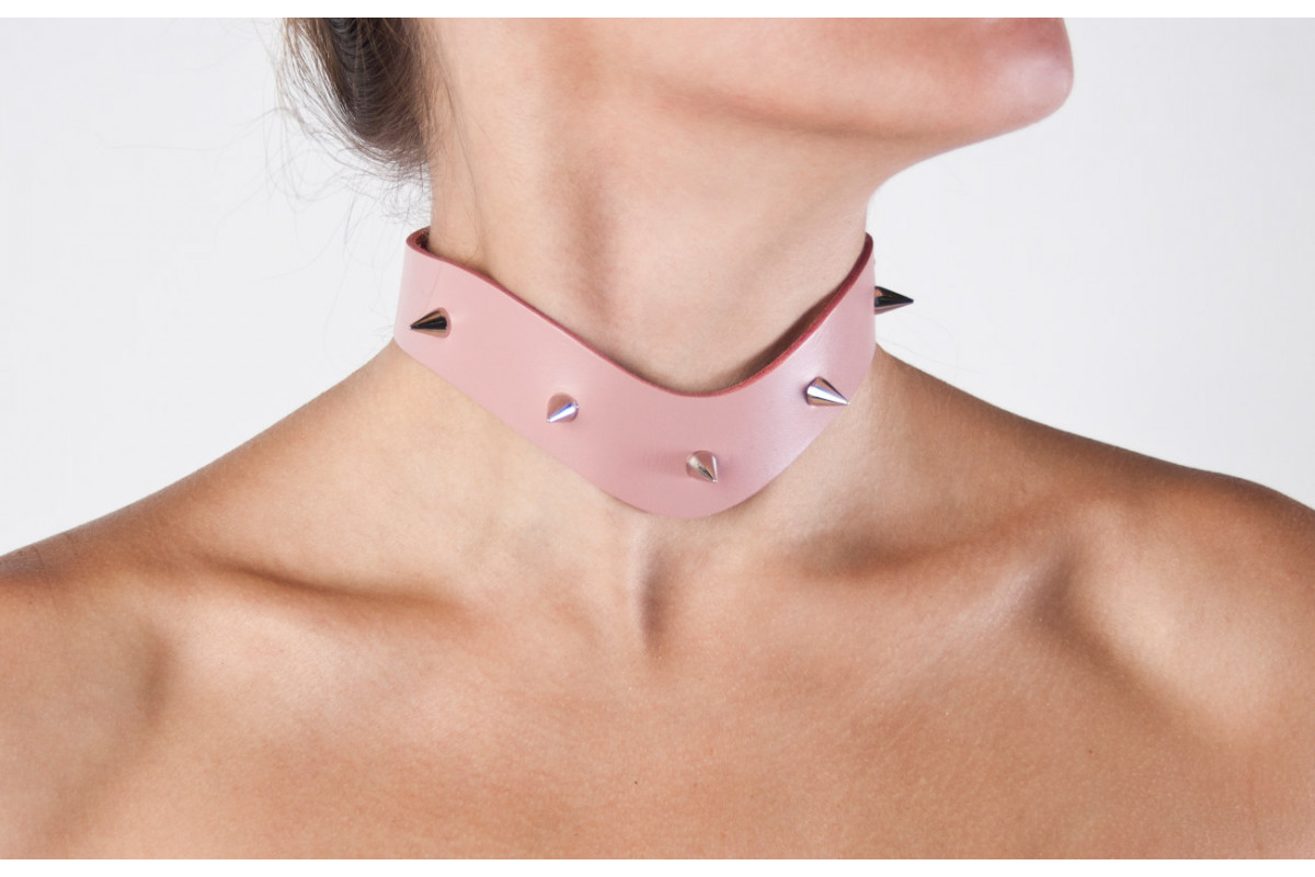 Лунный свет Ошейник премиум с шипами (нежно-розовый)