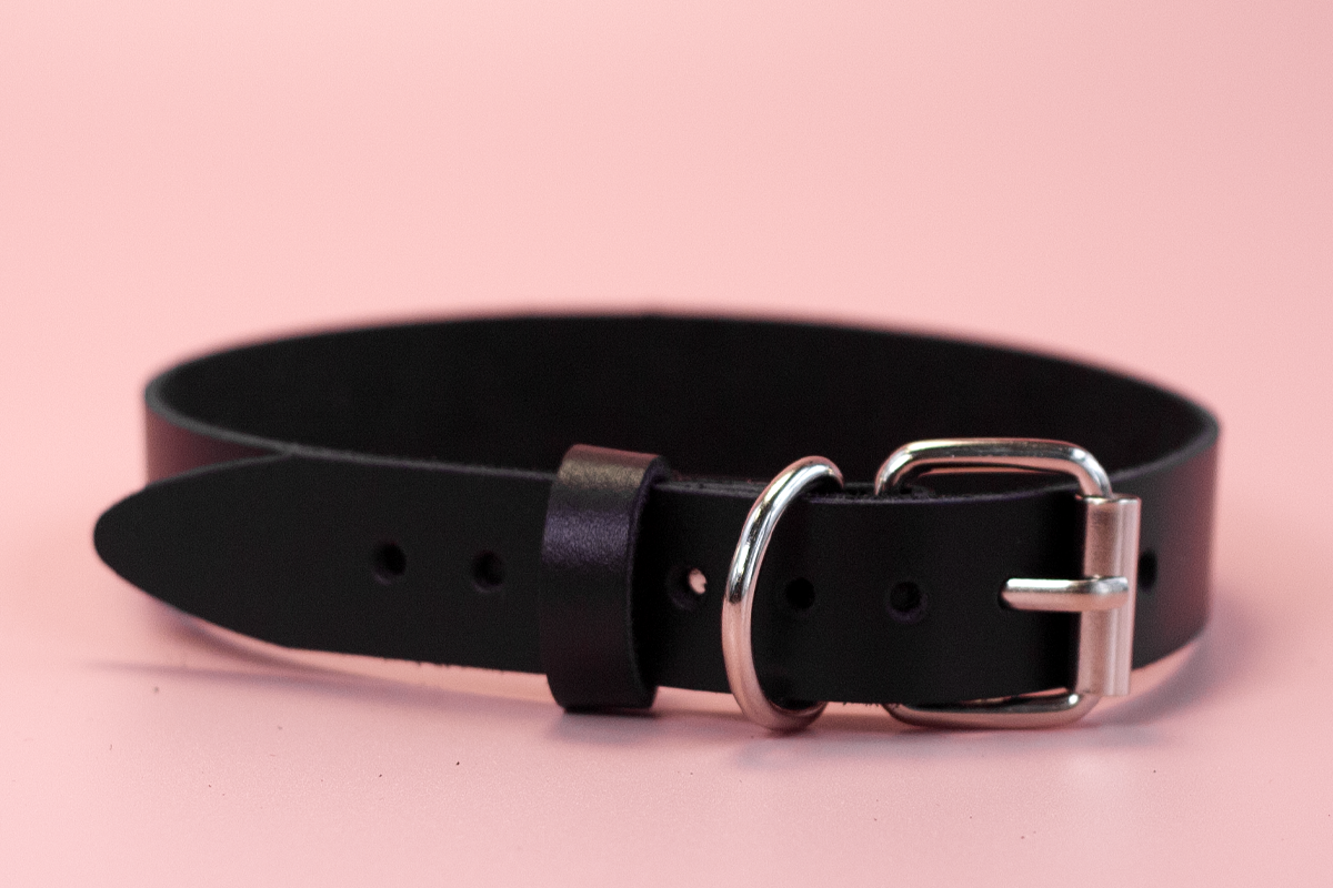 Ошейник для БДСМ имеет крепление для поводка в виде толстого и надёжного полукольца.