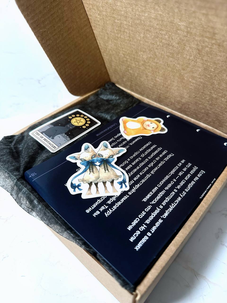 В набор входит одноразовая поостынь, инструкция по применению и приятные мелочи.