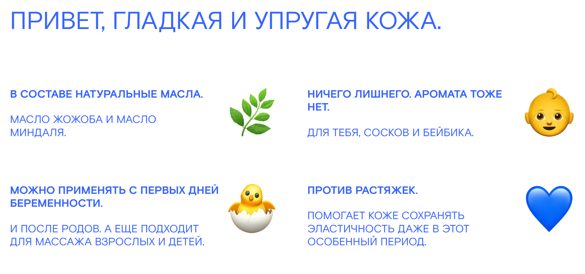 Можно использовать с первых недель беременности и после родов. А еще подходит для массажа взрослых и детей. Мультифункциональность — наше новое секси.