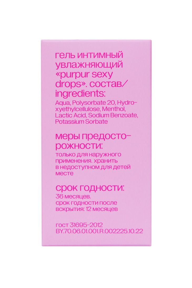 Purpur Sexy Drops не содержит силиконов, глицерина, масел и парабенов. Он совместим с любыми материалами секс-игрушек и презервативов.