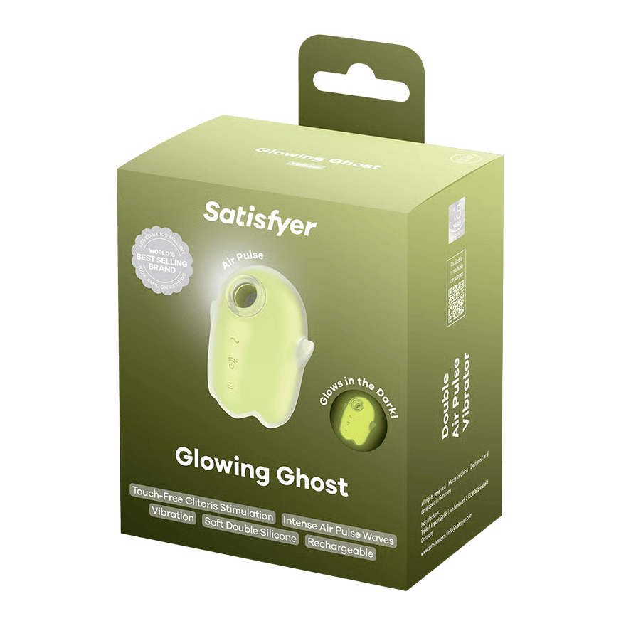 Satisfyer Glowing Ghost – привидение, которое никого не отпугнет: благодаря своему игривому внешнему виду и компактным размерам это идеальная игрушка для новичков. Светящийся в темноте вакуумно-волновой стимулятор с вибрацией Clowing Ghost от популярного немецкого бренда Satisfyer – это современная секс-игрушка, способная по-настоящему разнообразить вашу интимную жизнь и поднять представление о наслаждении на качественно новый уровень. Девайс получил оригинальный дизайн в виде игривого приведения с небольшими ручками, которое еще и светится в темноте красивым и мягким светом! Благодаря флуоресцентной поверхности вакуумно-волновой вибростимулятор светится в темноте и точно не затеряется под одеялом. Устройство оснащено двумя мощными моторами, которые обеспечивают 11 режимов вакуумно-волновой стимуляции и 12 режимов вибрации от нежной до самой интенсивной. При желании вы можете управлять функциями раздельно с помощью простых и понятных кнопок на передней панели. Поверхность модели изготовлена ​​из безопасного для тела, гигиеничного и очень приятного на ощупь силикона. Для максимального скольжения и более ярких и надежных ощущений используйте с игрушкой лубриканты на водной и гибридной (только силикон + вода) основе. Благодаря эргономичной форме постукивающий вибратор удобно лежит в руке и гарантирует, что вы можете с комфортом наслаждаться его работой. Аккумулятор устройства перезаряжается через магнитный USB-кабель (входит в комплект). Общая длина – 8,4 см, ширина – 6,7 см, толщина – 5,8 см. Уровень влагозащиты – IPx7 (Кратковременное погружение на глубину до 1 м длительностью не более 30 минут. При кратковременном погружении вода не попадает в количествах, нарушающих работу устройства. Постоянная работа в погруженном режиме не предполагается).