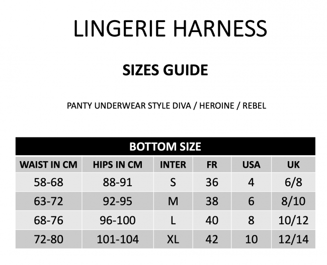 Откройте новые возможности для выражения своих чувств и желаний вместе с Strap-On-Me! Универсальные трусики-харнесс Harness Diva от Strap-On-Me выполнены с отверстием под фаллоимитатор (крепление O-Ring). Диаметр отверстия составляет 4 - 4,5 см, что идеально подходит для большинства фаллоимитаторов "стандартных" размеров. Широкий эластичный пояс обеспечивает мягкую посадку по фигуре, что гарантирует больший комфорт во время секс-игр. Съемные регулируемые по длине пажи для чулок декорированы атласными ленточками на концах. ВНИМАНИЕ! Фаллоимитатор в комплект не входит. Состав материала изделия: 75% нейлон, 25% эластан. Кружево: 90% нейлон, 10% эластан. Допускается ручная или машинная стирка в деликатном режиме Не отбеливать, не сушить и не отжимать в стиральной машине, не гладить утюгом. Выпускаются в нескольких размерах по длине резинки: XL (40 см). Чтобы подобрать подходящий размер, возьмите трусики, которые обычно носите, положите их на ровную поверхность и, не растягивая, измерьте длину по резинке.