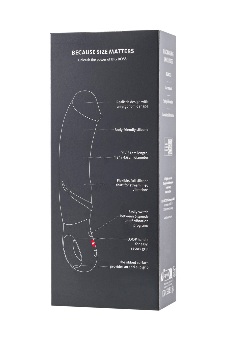 Длина, толщина и гибкость Big Boss обеспечивают интенсивную и мощную внутреннюю стимуляцию – именно так, как вам нужно.