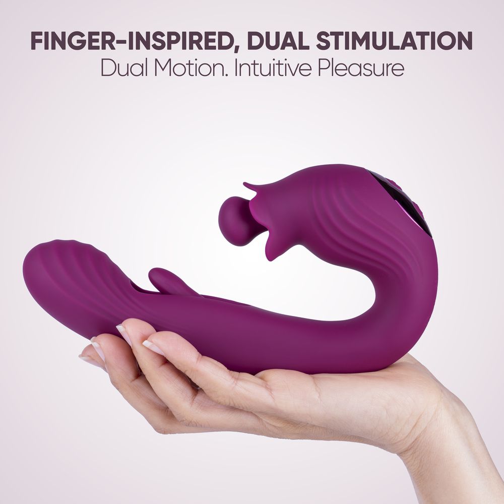 Вращающийся на 360° клиторальный стимулятор в 3 скоростях обеспечивает точную и чувственную стимуляцию, а изогнутая вагинальная часть с функцией фингеринга имитирует манящие движения "иди сюда", направленно воздействуя на точку G. Сочетание вибрации в 10 режимах и ритмичных импульсов усиливает ощущения и делает каждый оргазм особенным.