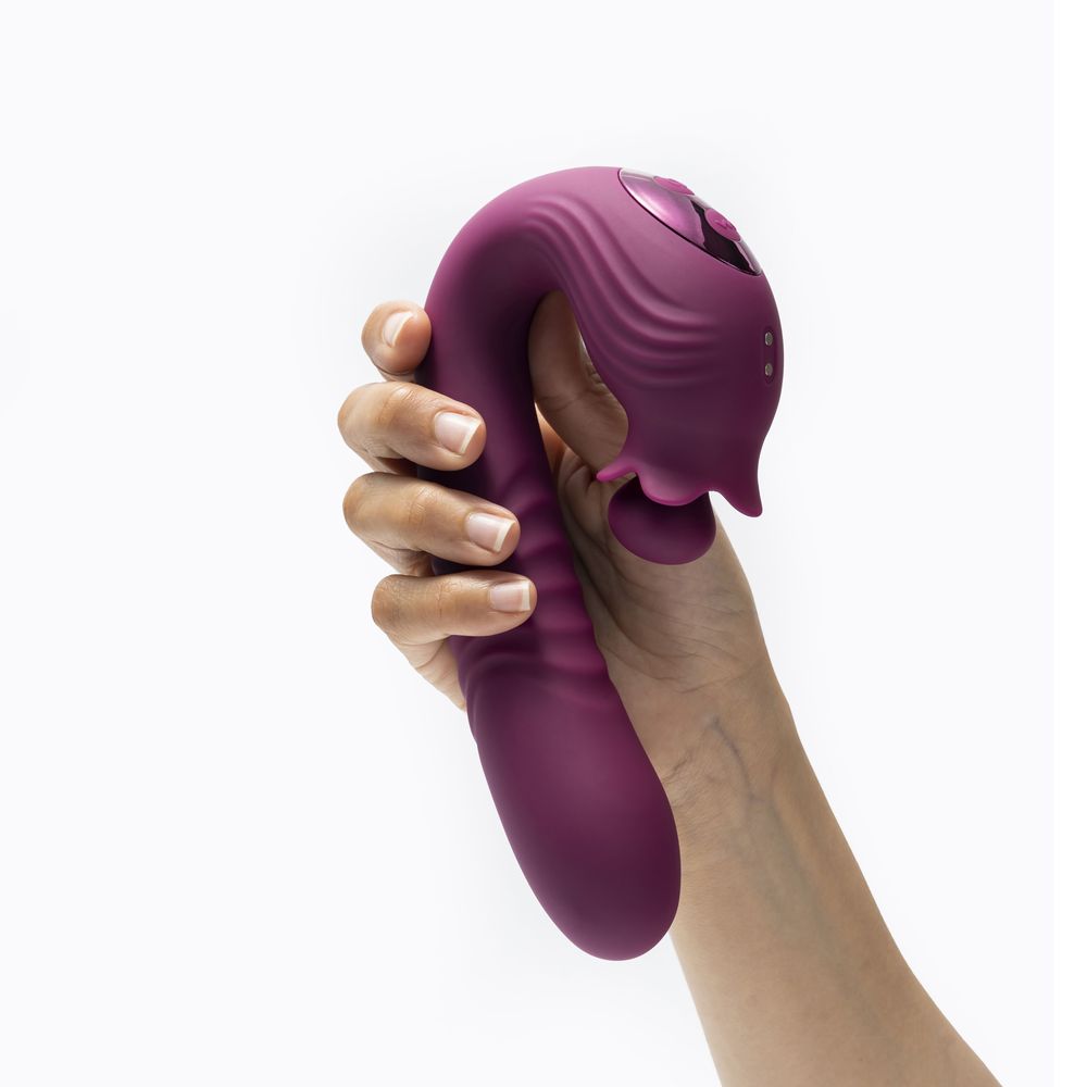 Изогнутая вагинальная часть предназначена для воздействия на зону G. Она сочетает поступательные движения с амплитудой около 1,2 см, круговые движения, напоминающие жест «иди сюда», и вибрацию головки в 10 режимах. Это создает глубокую вибрацию и ритмичную стимуляцию зоны G.