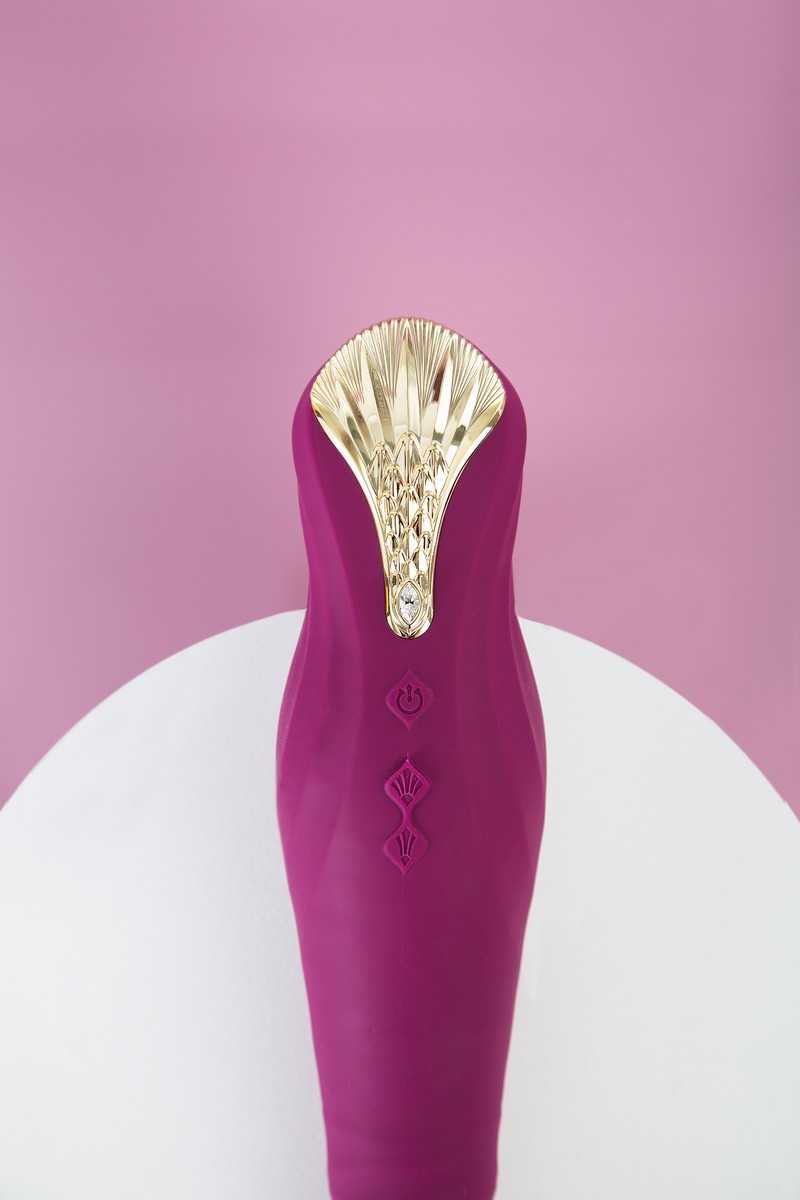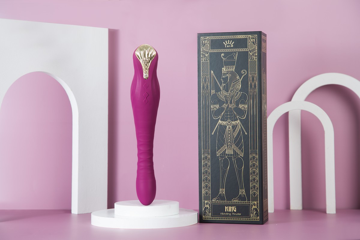 Вибратор Zalo King — это воплощение элегантности и передовых технологий. Его дизайн вдохновлен маской древнеегипетского фараона, символизирующей силу и власть. Золотистая поверхность украшена сияющими кристаллами SWAROVSKI, что придает устройству роскошный вид.