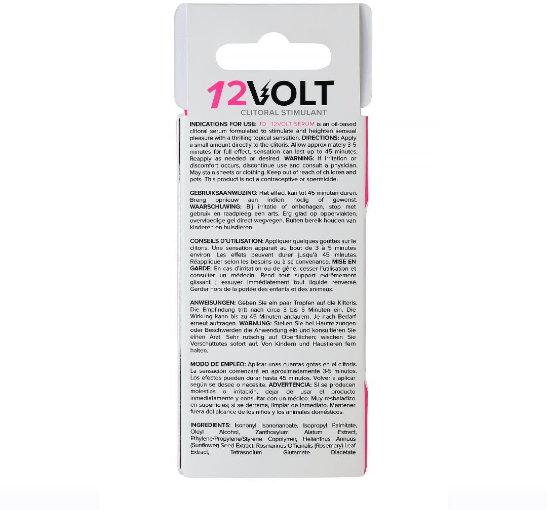 В основе этого продукта — экстракт японского перца (зантоксилум), который известен своими возбуждающими и стимулирующими свойствами, обеспечивая приятное тепло и легкое покалывание. Дополнительно экстракт розмарина помогает улучшить микроциркуляцию и повысить чувствительность, а тетранатрий глютамат диацетат действует как природный стабилизатор, усиливая эффект и обеспечивая длительное ощущение вибрации. С JO 12VOLT вы ощущаете настоящий восторг и наслаждение благодаря быстрому действию — всего через 3–5 минут после нанесения на клитор появляется эффект тепла и покалывания. Этот эффект будет поддерживаться до 45 минут, а затем, при необходимости, вы можете повторить его для нового всплеска ощущений. Этот гель идеально подходит как для самостоятельных исследований, так и для парных игр, превращая интимные моменты в настоящее искусство удовольствия.