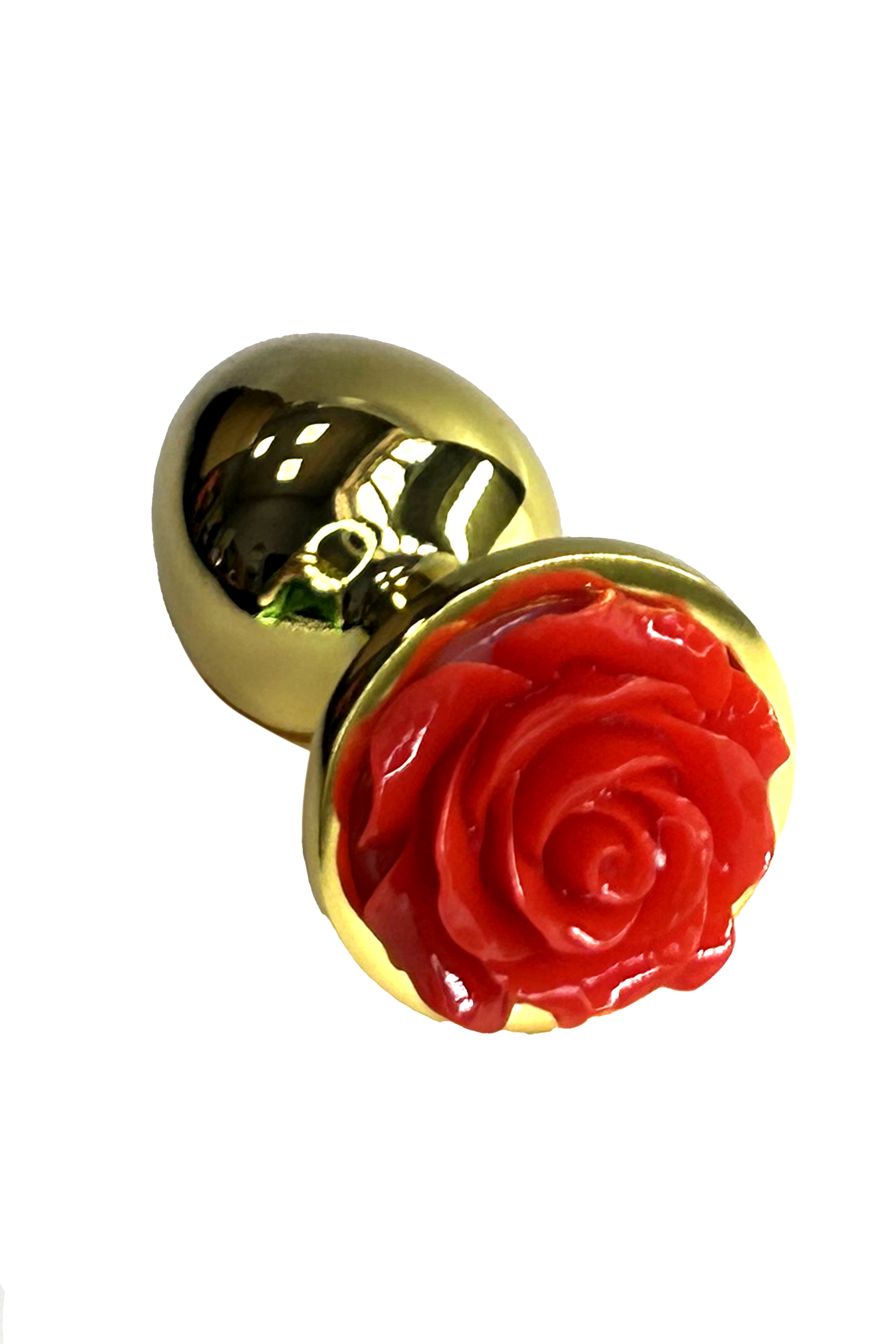 Kanikule - Золотая анальная пробка с ограничителем в форме красной розы (Small)